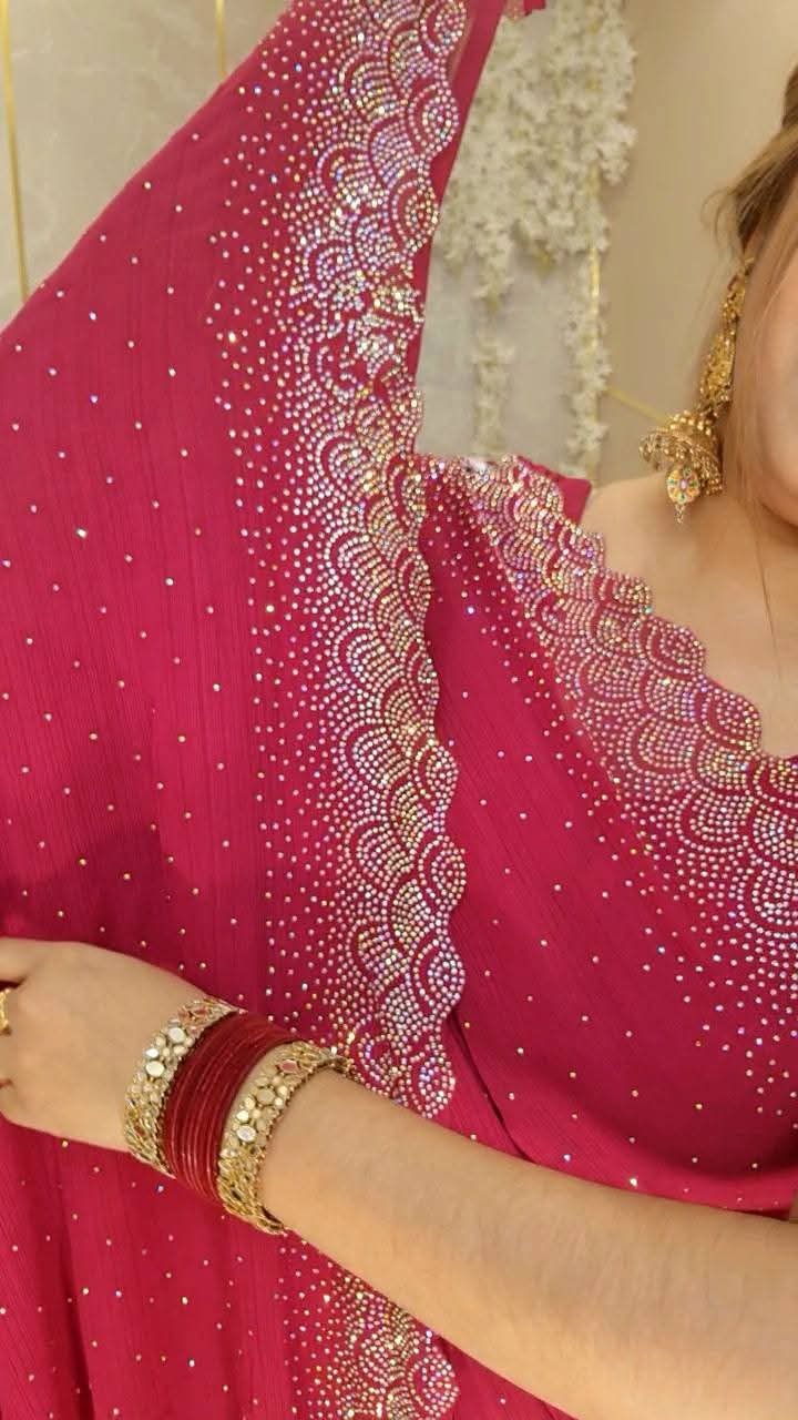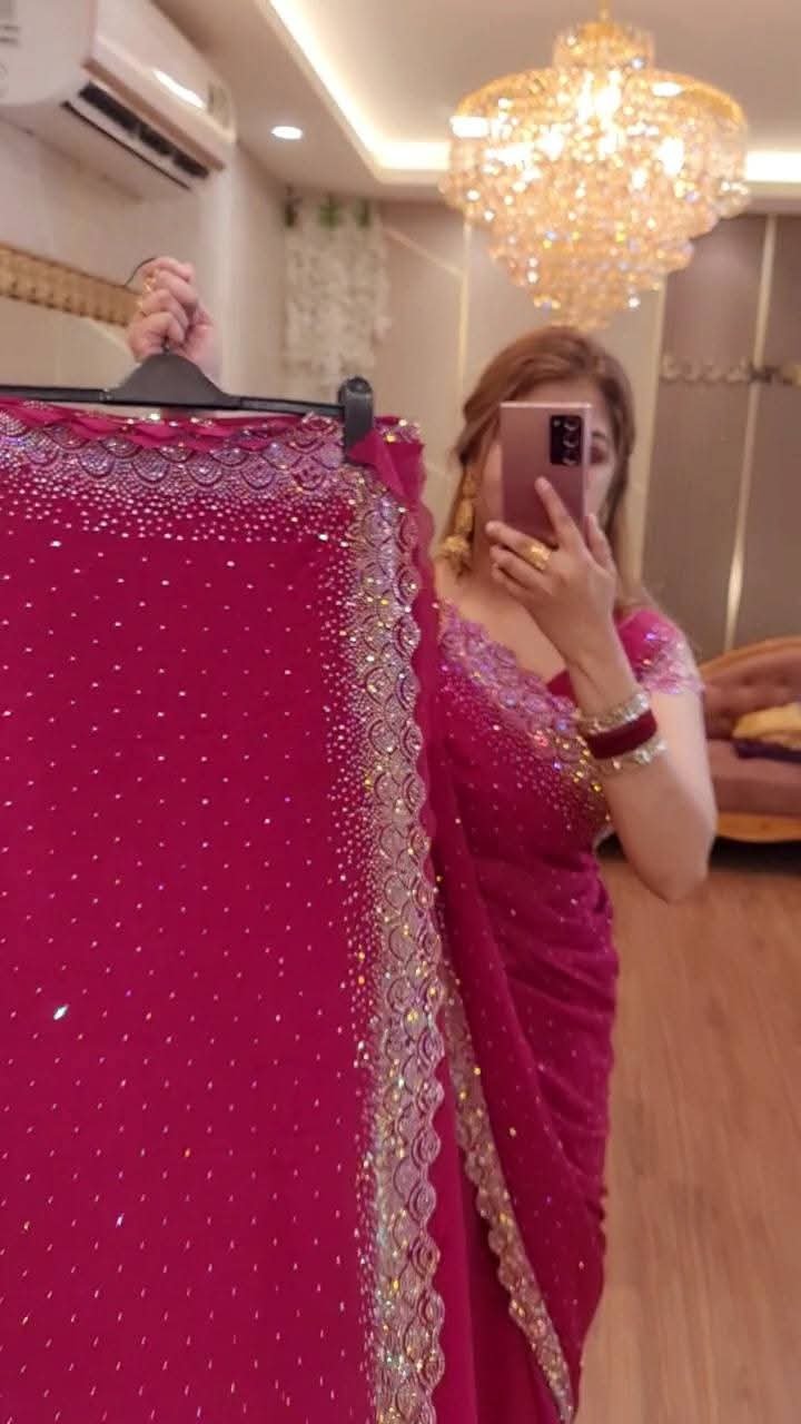 ✨ White Gold ইন্ডিয়ান জর্জেট শাড়ি – ব্লাউজ পিসসহ ✨